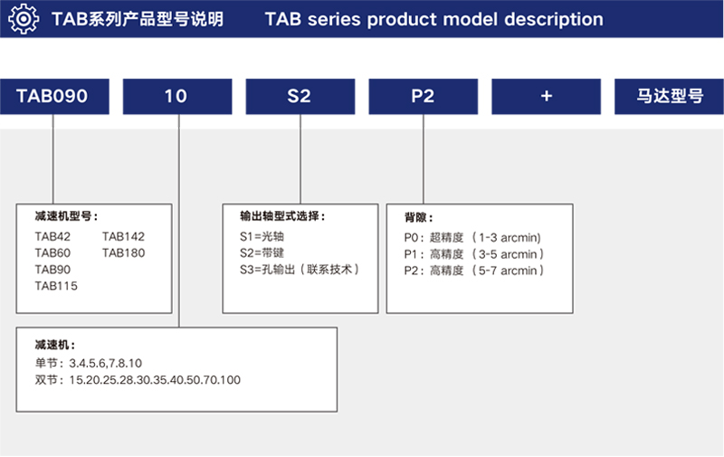 規格 Specification | 單位 Unit | 節數Stage | 減速比Ratio | TAB42 | TAB60 | TAB90 | TAB115 | TAB142 | TAB180 | TAB220 |