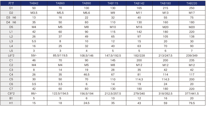 TAB系列性能參數表 / TAB Series Performance Table | ||||||||||