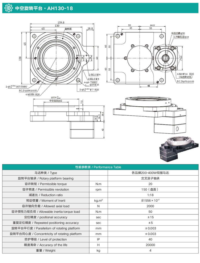 無(wú)齒隙,定位精度≤15sec,重復(fù)定位精度可達(dá)±5sec