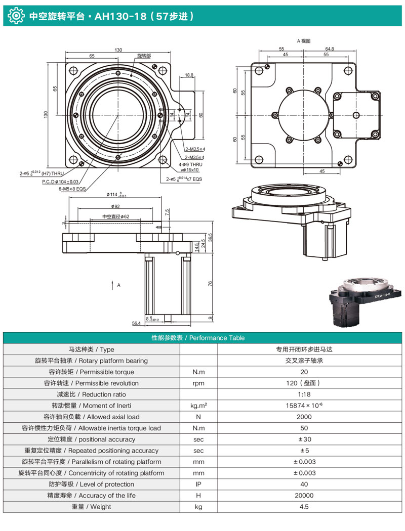 無齒隙,定位精度≤15sec,重復(fù)定位精度可達(dá)±5sec