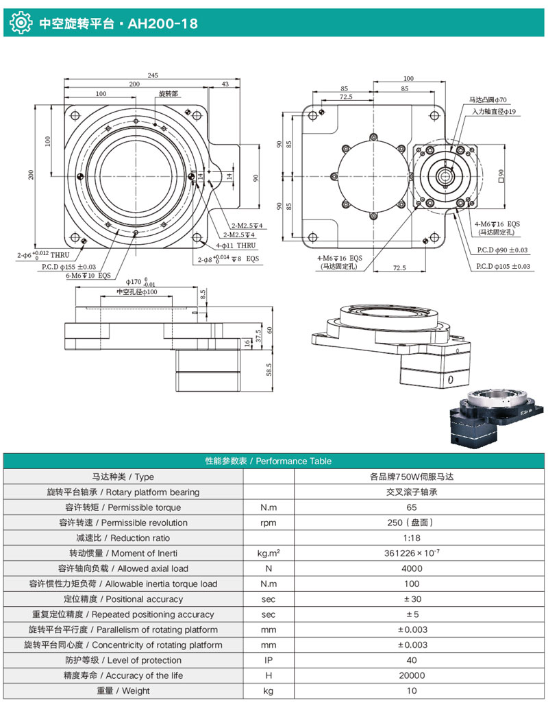 無齒隙,定位精度≤15sec,重復定位精度可達±5sec
