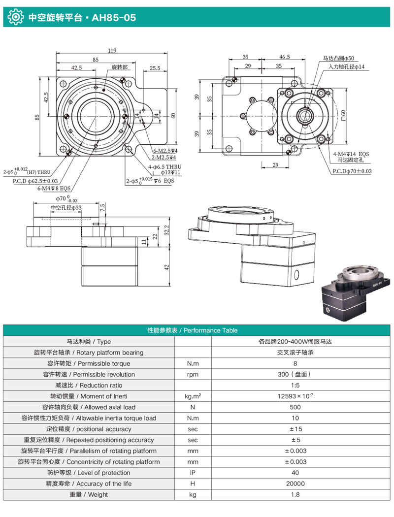 無齒隙,定位精度≤15sec,重復(fù)定位精度可達(dá)±5sec